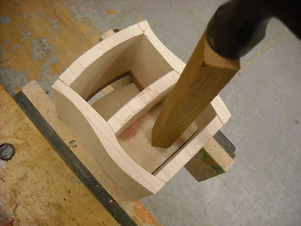 Apoyar la caja boca abajo en un vicio. Abrirlo suficiente que las mordazas no toquen los cajones.