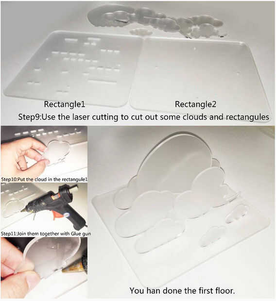 Step9: Utiliza el corte por láser para cortar algunas nubes y rectangules