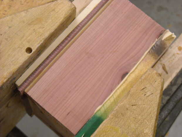 La única parte delicada con esto es que los niños tienen que preparar la superficie donde irá la tapa. Usar placas de lijar para hacer esto. La arena ahora las tapas como para que encajen las dos superficies bien junto sin espacios. Sujetar la caja bien y eliminar totalmente los huecos.