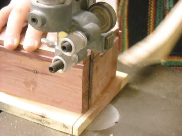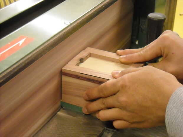 Ahora uso la lijadora de banda para finalizar el resto de las caras de la caja. Obtener los alumnos de utilizar un cuadrado y trazar líneas en los bordes inferiores paralelas a los bordes de la madera. Esto actúa como una guía para los niños para que no vayan demasiado lejos al lijar. A menudo los niños se mantenga lijar hasta que han quitado totalmente toda la incrustación de madera. También tienen un tiempo difícil mantener los bordes paralelos. Ayudarán a las líneas.