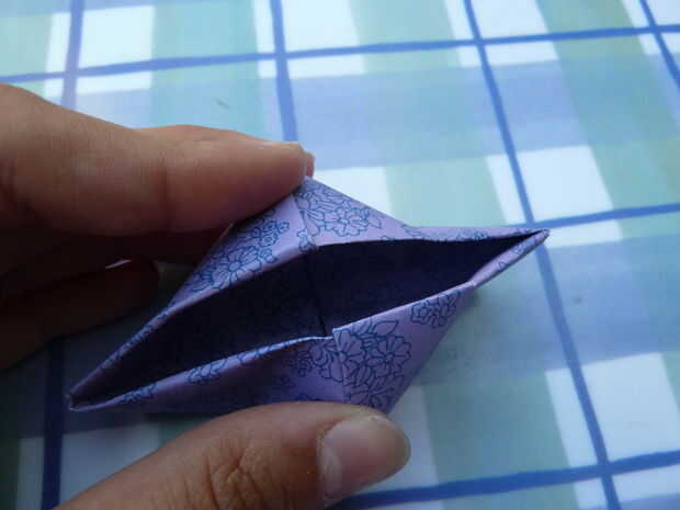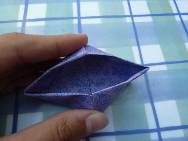 Ahora doble el modelo a la mitad trayendo dos esquinas opuestas a unos de otros.