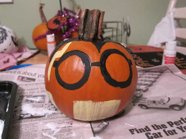 - Pintura en la cicatriz de Harry en un patrón de perno de relámpago, asegurándose de no tocar la pintura negra.