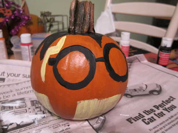 - Usando el cepillo de la esponja, pintar en amarillo porciones de bufanda icónica de Harry acariciando hacia abajo
