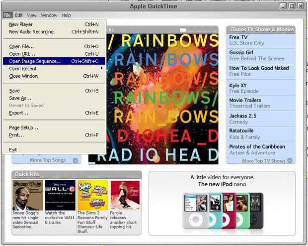 Siguiente (si estás usando Quicktime Pro), ir a archivo > Abrir secuencia de imágenes. Selecciona la primera imagen del vídeo y presione OK. Tu video debe ser creado automáticamente!