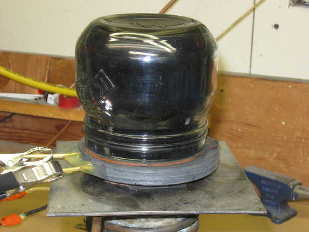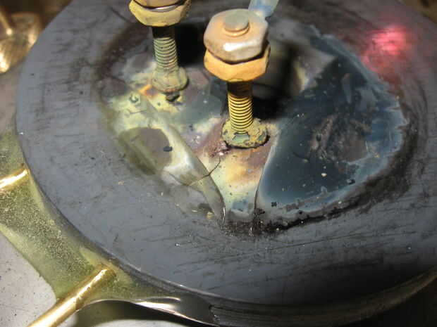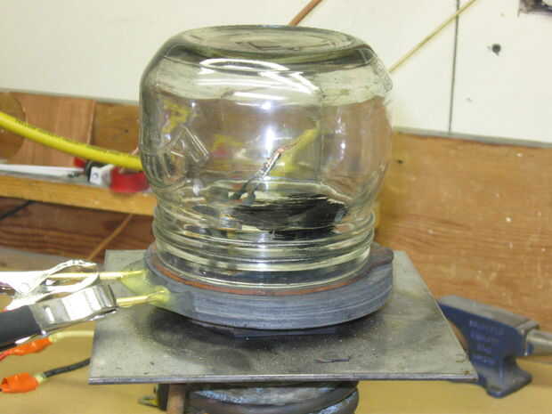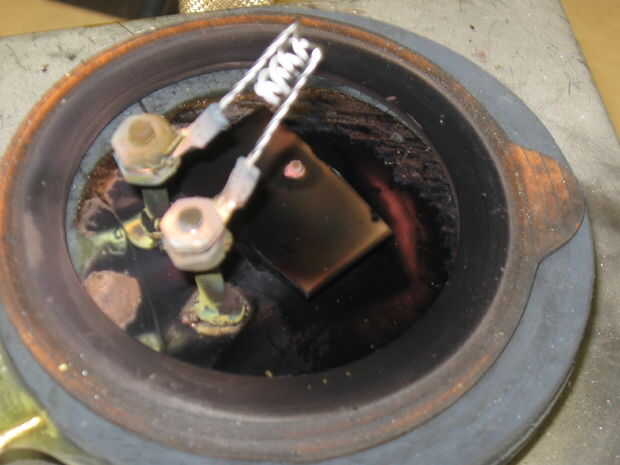 Como se puede ver después de calefacción varios ciclos la base es carbonizado y fundido. El epoxi muestra señales de agrietamiento.