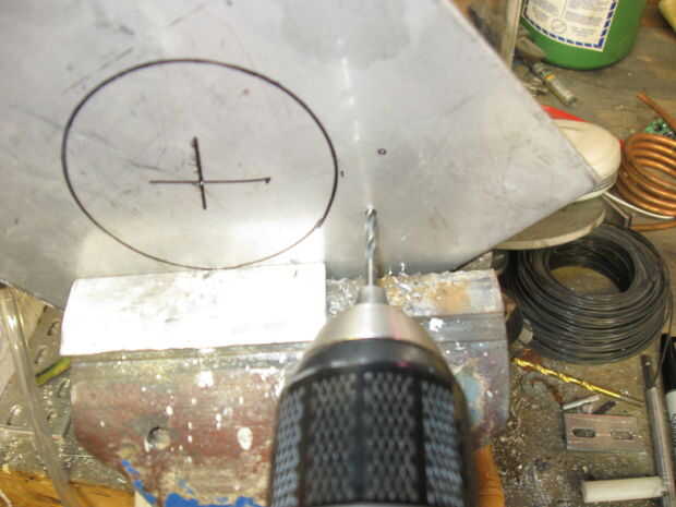 El agujero debe ser lo suficientemente grande como para vacío rápida y lo suficientemente pequeños como para proporcionar una superficie de trabajo estable. Elegí un taladro de media pulgada para esto.