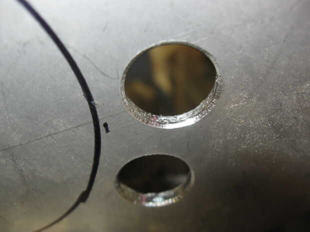 Utilizar primero una broca pequeña y relativamente despacio. gradualmente aumentar el tamaño de la broca, esto reducirá grandemente tomará tiempo. Usé 3 bits diferentes en este paso. Una vez perforado el agujeros deben ser concienzudamente y limpiar.