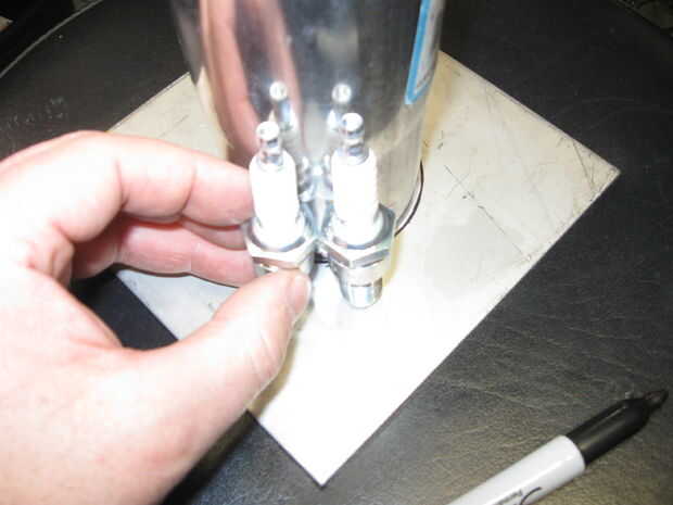Los agujeros de la bujía deben ser 9/16 de pulgada para un ajuste sin fricción. Asegúrese de dejar suficiente espacio entre los enchufes de chispa y tubo elevador para el aislamiento eléctrico.