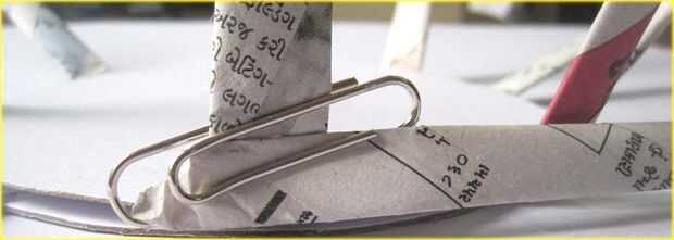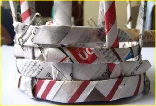 U uso pin o una pinza de ropa para mantener los tubos seguro mientras que tejerlos. Asegúrese de utilizar algún pegamento cada vez que agrega un nuevo rollo de periódico.