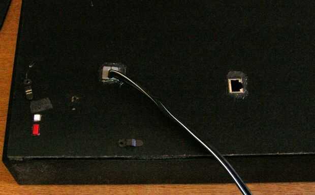 pienso montar interruptores de alimentación, el enchufe de CA y un conector Ethernet en la parte posterior de la unidad. Estos se realizaron principalmente con JB weld y algunos dispositivos al azar.