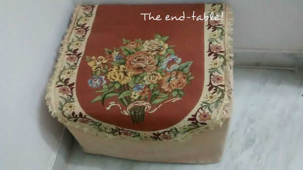 Así que necesitaba una mesa para mi sofá. Problema es, que vivimos en una casa pequeña y no tiene un montón de habitación para opciones de muebles tradicionales... Entra en la tabla de extremo resto de brazo, con carátula personalizada para ensalzar