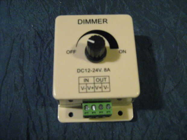 No utilizo un control de velocidad en el motor, ya que la centrifugadora funciona bastante bien para mis propósitos a la velocidad máxima.  Dependiendo del motor que uses, un control de velocidad puede ser útil.  Esto se puede agregar fácilmente a través de un control de dimmer LED, que se muestra arriba. Estos pueden encontrarse en eBay por unos $ 3.  El cableado es muy simple, con dos terminales para 12 V CC entrada y dos bornes para la salida regulada.