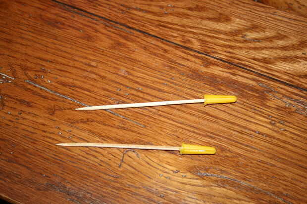 una manera rápida y fácil para hacer un golpe de dardo, ideal para uso en interiores. Y muy divertido!!!!!!Paso 1: Se necesita ! Se necesita:1 lana o hilo2 hilo de rosca o cuerda (hilo funciona mejor)3 palillos o selecciones de diente4 tijeras5 PVA p