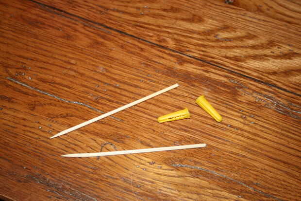 una manera rápida y fácil para hacer un golpe de dardo, ideal para uso en interiores. Y muy divertido!!!!!!Paso 1: Se necesita ! Se necesita:1 lana o hilo2 hilo de rosca o cuerda (hilo funciona mejor)3 palillos o selecciones de diente4 tijeras5 PVA p
