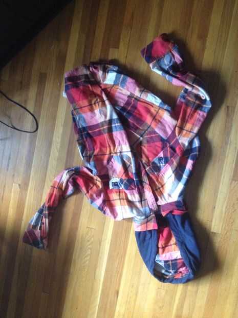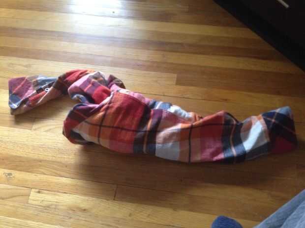 Usted debe terminar con una funda que parece que hay otra manga que sale, como se ve en la foto de último segundo arriba.