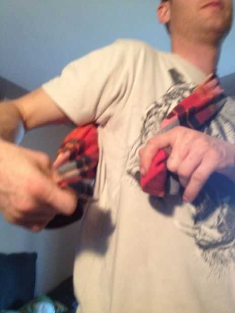 Cuando usted usa el "bolso de la chaqueta" debe ser el final de la muñeca de la manga que se rellena en la parte inferior debajo de su axila. Si pones hasta arriba sobre su hombro se mantienen separación.