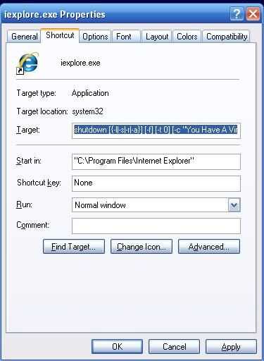 El resultado: Su marca intenta abrir Internet explorer, sólo para encontrar su ordenador apagado. Si usted coloca un mensaje en la parte de "mensaje" - c, puede aumentar la hilaridad de hace referencia al virus o tal vez algo personal, como "Adiós Bob..."