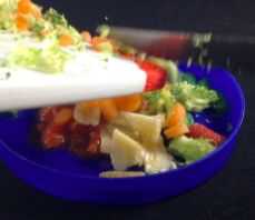 Ahora, vierta la fresa en y luego todos los alimentos frescos en la parte superior las pelotillas empapadas! Camino por recorrer! Haya terminado "La ensalada primavera"!
