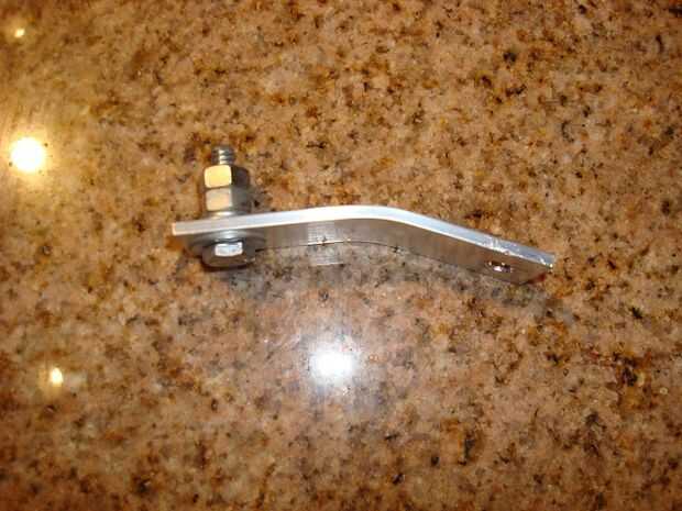 En el agujero montara una pila de sujetador que consiste en el ¼" tornillo, una arandela plana ¼", la tira de aluminio, una arandela plana ¼", una arandela de seguridad ¼" y luego 2 x ¼" nueces. La primera tuerca debe apretarse. Usted puede incluso poner Loctite esta tuerca si tienes algunos. Esto evitará que el perno fijo cuando se coloque la cámara. La segunda tuerca puede permanecer suelta por el momento.