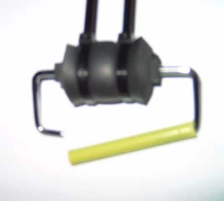 Tomar un marcador y medir cuánto se debe cortar. Uno de los extremos del tubo debe ser capaz de deslizarse sobre un lado del mango, dejando un poco de espacio en el otro lado. Reffer a las fotos si no es lo suficientemente clara.