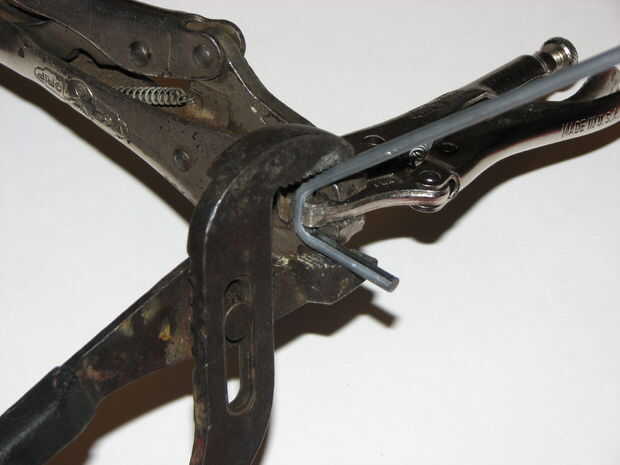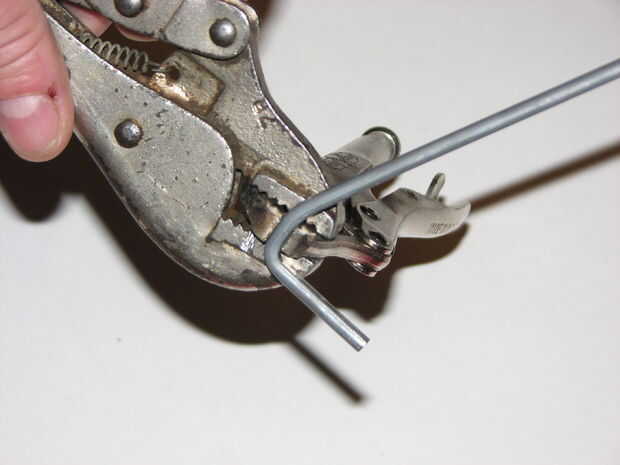 En este punto me di cuenta el lazo de cuero que viene con la correa original no iba a cortar como titular de la ficha. Decidí hacer un soporte de ficha aspecto más industrial. Tomé algunos 1/8" varilla que encontré en mi garaje y dobló en un rectángulo del ancho de la correa de distribución.