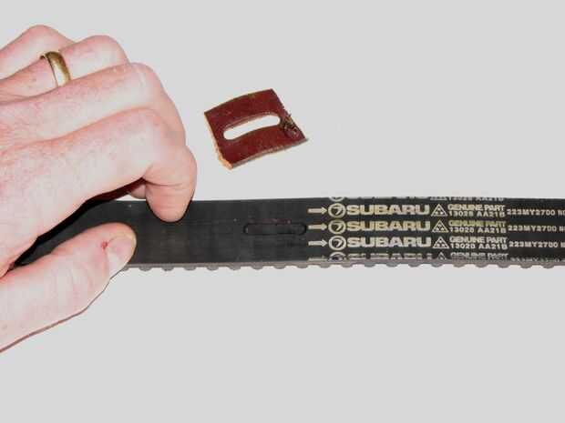 Primero se corta la correa cerca de donde planeaba poner la hebilla. A continuación, poner el pequeño trozo de cuero de la correa original en este punto y localizar el área que debían eliminarse.