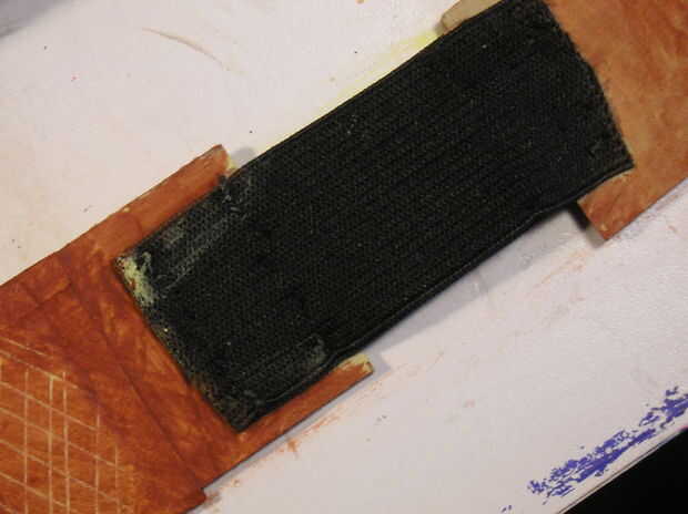 Un trozo de elástico se cose en dos piezas de la correa como se muestra. Mediante el uso de este elástico, la correa puede "ampliar" como sea necesario para un ajuste perfecto. El elástico también tira en el corchete para asegurar un positivo "lock" para que la correa no se deshizo.