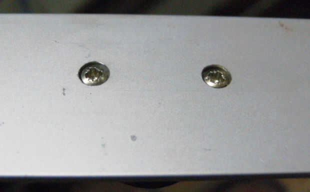 Encontré que los tornillos (métrico) 2 x 10 eran el ideal para el grosor del perfil de aluminio y los pernos de montaje en los soportes de lente. Se colocar también perfectamente en los orificios avellanados que había perforado antes.