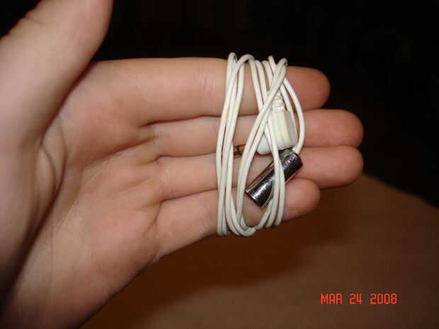 B. a continuación, envuelva los auriculares alrededor de su mano como en la foto #2.