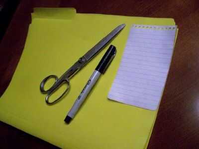 Saque una hoja del Bloc de notas para utilizar como patrón así que usted puede cortar dos trozos de cubierta nueva.
