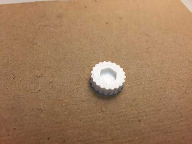 También hice una maqueta rápida de la rueda de pulgar para asegurarse de que encajaría en mi cabeza de tornillo de cabeza hexagonal. Generalmente es una buena idea hacer este tipo de probetas pequeñas mientras que diseño para acelerar el proceso, en lugar de esperar horas por una parte completa para imprimir, sólo para encontrar que sólo está un poco demasiado apretado.