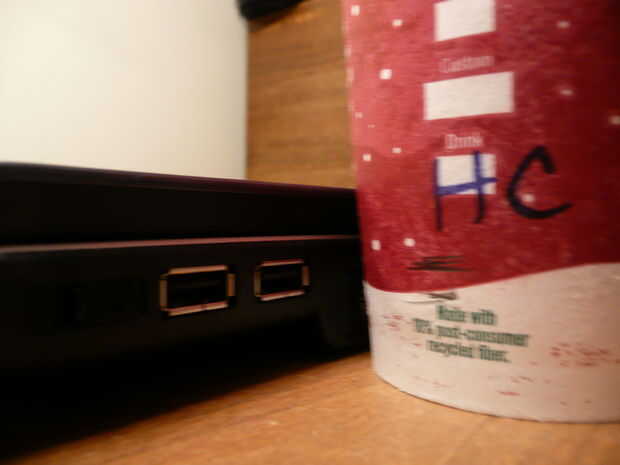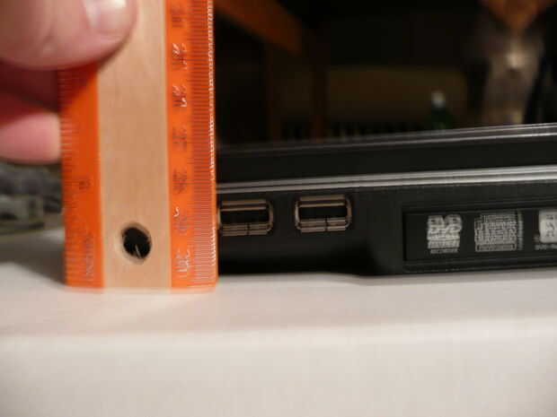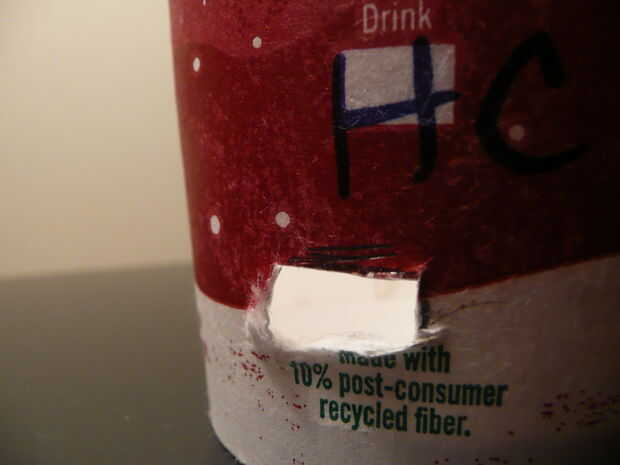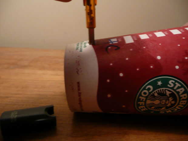 En cuarto lugar, usando la línea en su copa como una marca de guía en forma agujero en la Copa con la unidad de USB.