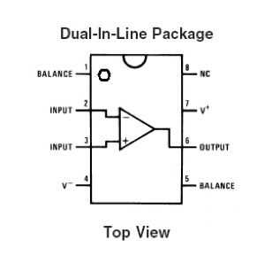Como se puede ver en el diagrama, tiene dos entradas - una entrada "menos" (inversión) y una entrada (no inversión) "plus" - y uno de salida.