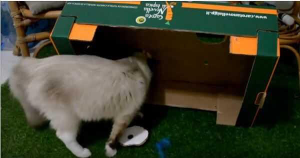 Cortar agujeros * que han marcado y deje que tu gato vaya por debajo de la caja.