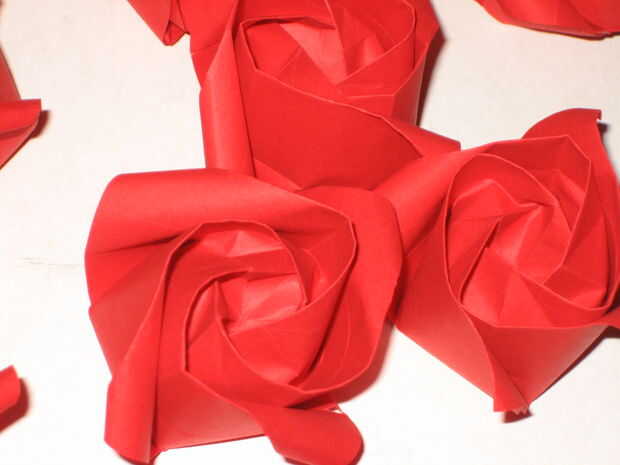 Una docena rosas de Origami de rojo (1 / 6 paso)