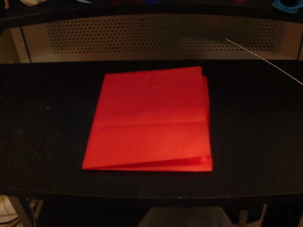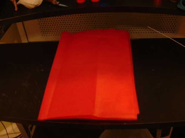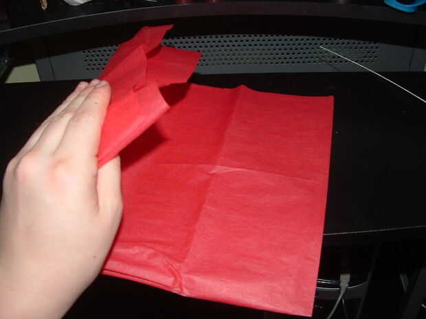 Consigue un trozo bastante grande de papel de seda rojo. (Debe ser grande, pero tamaño es relativo, como puede cambiar su tamaño de flor deseada). pone hacia fuera y doblar por la mitad verticalmente. por otra parte, horizontalmente.