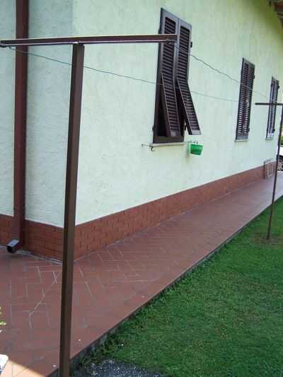 Una usada de los postes de T que contiene uno de los extremos de los cables que utilizamos para colgar ropa para secar. ¿Sí, no sabes que el sol realmente puede secar la ropa? Y es incluso más barato que su secador de ahorro de energía de SupaDupa. :-) Aquí es un buen artículo de Nicole Martinelli (Wired) sobre lavado secado hábitos en Italia.