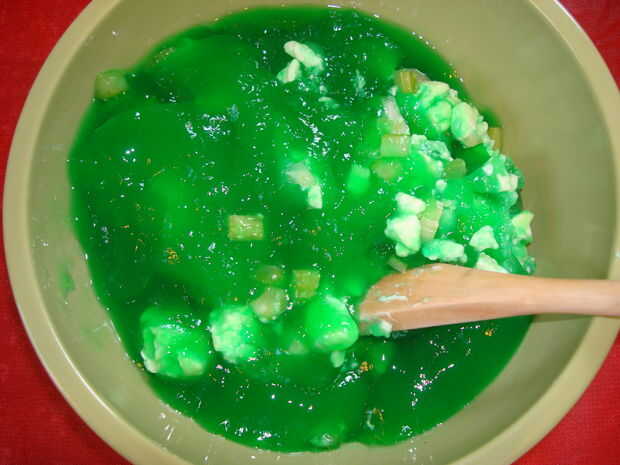 esta ensalada de frutas de gelatina se basa en uno de recetas de la abuela de hippie_mama. Es muy probable que el combo de gelatina sólo comida que venía de los años 50... ¿Gelatina de naranja y zanahoria cualquiera? Yo no.Hacer esta ensalada de frut