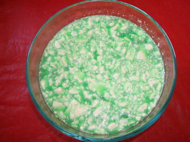 si te gusta la ensalada, pero no vegetales, esto puede ser para usted!(o si simplemente crees que esto sería una cosa divertida para hacer para una cena...)IngredientesGelatinaPerlas de tapiocaCrema de lecheHerramientasSalsa de PanPara hornearJeringu