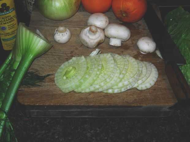 1 rebana finamente el hinojo (hinojo puede ser difícil, así que esto es importante),