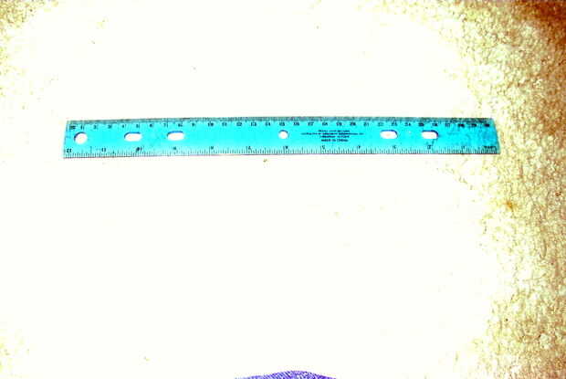 PRECAUCIÓN: Perfore el agujero del mismo tamaño que otra lenta y cuidadosamente. El plástico en una regla 33 ciento es fino y barato. Lo sé; Rompí mi primer uno.
