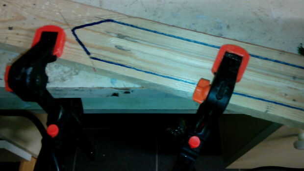 se trata de cómo hacer una espada de madera cuando no tienes un pedazo grande de madera. Si tiene cualquier duda pregunte.Paso 1: en primer lugar, dibujar el diseño sobre la madera, asegurándose de sacar una pieza que sobresale de uno y un espacio en