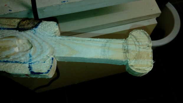 Utilicé una sierra de calar para recortar la forma de la espada.