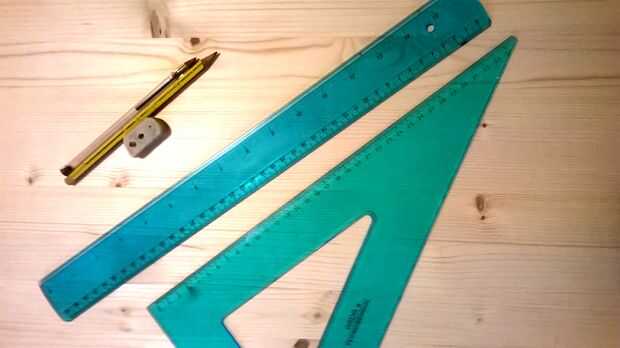En segundo lugar, tenemos que dibujar cuatro líneas más: uno en medio de la longitud del panel, otros tres para que una mitad del grupo se divide en cuatro partes iguales. La última de ellas corre diagonalmente desde el extremo de la línea 2 y el comienzo de la 3ª. Ahora tenemos que borrar la segunda mitad de la línea 2 y la primera mitad de la 3er. (imágenes 4 y 5 de referencia)