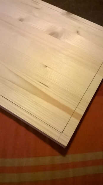 Para ello, comenzamos a dibujar cuatro líneas distantes 1,5 cm desde los bordes del panel como se muestra en las fotos 1 y 2; Aquí encontrará su lugar marco que fabricamos más adelante.