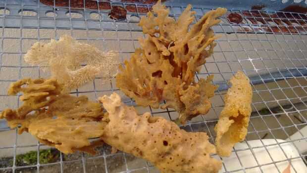 Presione tanta agua como sea posible de tus esponjas y luego poner fuera a secar durante un día o dos. Nuestro colocamos sobre una rejilla elevada, así que había circulación de aire alrededor de las esponjas y cubierto con una maceta de plástico que hemos cargados abajo con la roca, puesto que tenemos ardillas y reyezuelos que cualquier pieza mira interesante de material que podrían ser remotamente comestible o útil en un nido.