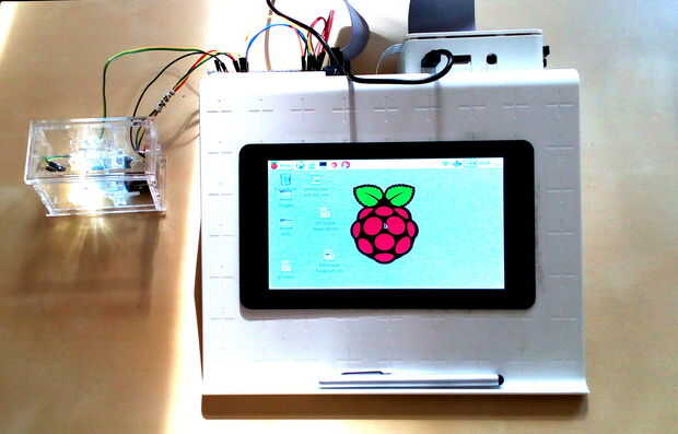 Cuando recibí mi primer touchscreen de Raspberry Pi, me dio la impresión que el dispositivo es un poco frágil y necesita un bastidor de soporte. Además, encontré la solución sugerida a cuestas la IP directamente en la parte posterior de la pantalla subóptima y voluminosos. Pero quise adjuntar pantalla táctil y Pi en una placa, para descansar una tableta-como construcción whichcan en un escritorio por sí mismo y puede ser utilizado como una pantalla interactiva y la estación de trabajo.