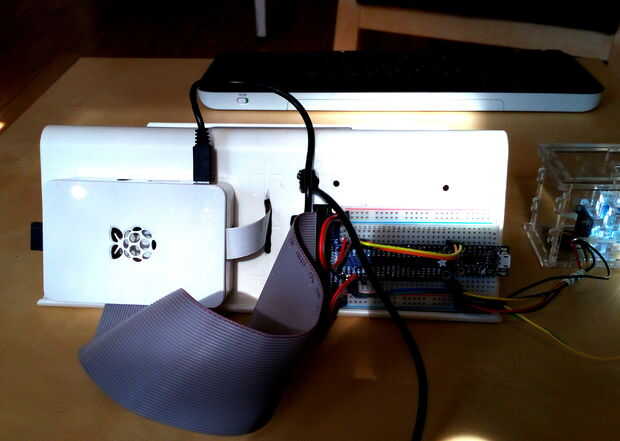 Finalmente añadí un tablero de pan pequeño a la parte trasera de la estación de trabajo, para hacer más fácil conectar el Pi con algunos sensores, dispositivos o un Arduino nano/Abalorio. Alternativamente usted puede Agregar aquí un altavoz u otro dispositivo.