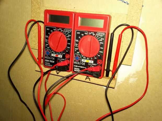 Yo también etiquetar un metro V (voltios) y la otra A (amperios). Por supuesto no siempre tienen que utilizarse para eso, pero al medir la potencia que debería ayudar a mantener las lecturas separadas de un vistazo.