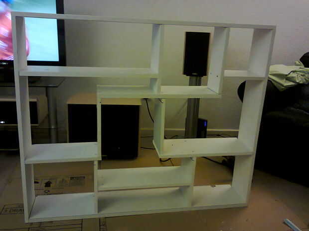 Por lo que al final encajadas entre sí como esta. Porque las piezas eran todas de diferentes tamaños, significaba que no importaba todo lo que precisa como todas las secciones eran irregulares, por lo que realmente no podía ver mal! Es decir, mientras todo lo conseguí en ángulo recto. Terminé con un espacio muy bajo cerca de la mitad pero que podría ser utilizado para la pila de papeles sobre o algo.